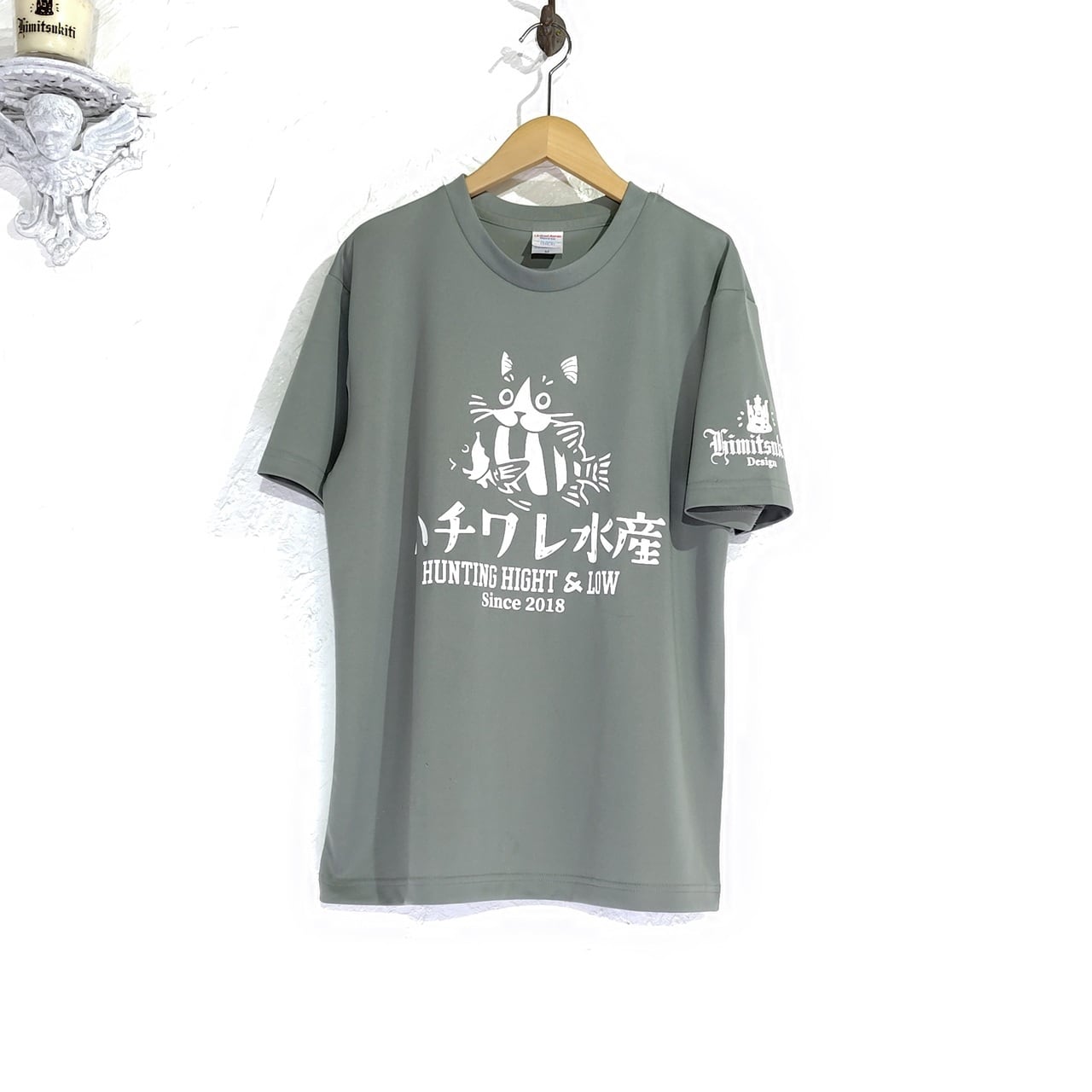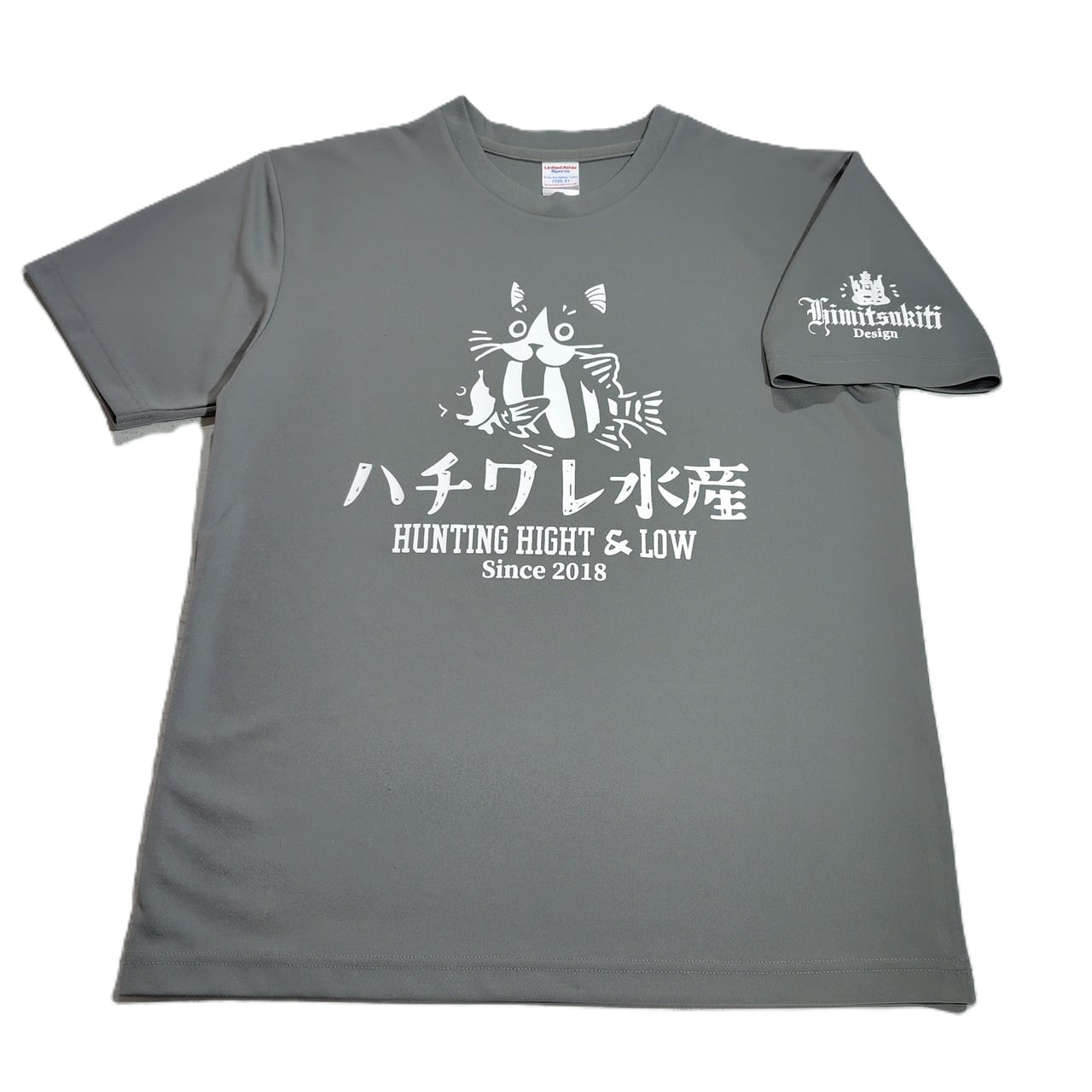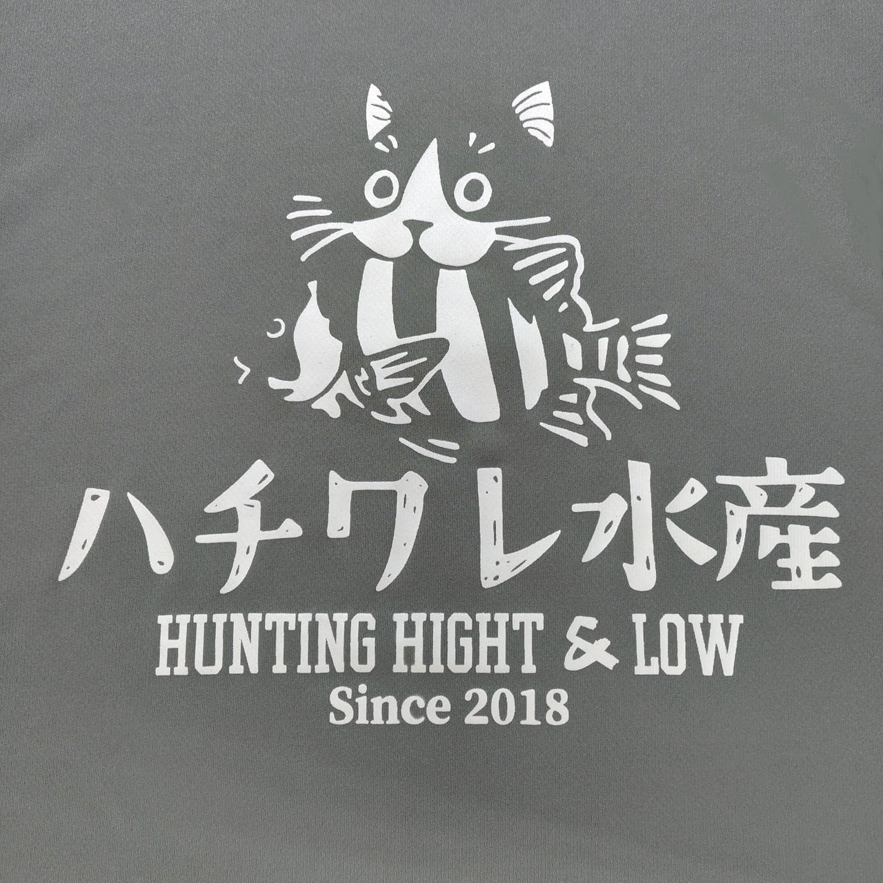YouTube【ヒミツキチチャンネル】で着用中のオリジナルデザインTシャツシリーズ!『ハチワレ水産Tシャツ』★お魚くわえたハチワレ猫ステッカー付★